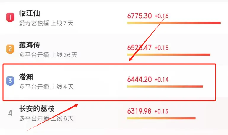果不其然,一开播热度直线飙升,把古装剧《长安的荔枝》远远的甩在身后,位居榜三的位置。