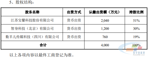 11月5日,宝馨科技(002514)发布公告称,公司拟与智身科技(北京)有限公司、数羊儿传媒科技(四川)有限公司签署《股权投资协议》,共同出资在四川成都设立合资公司。